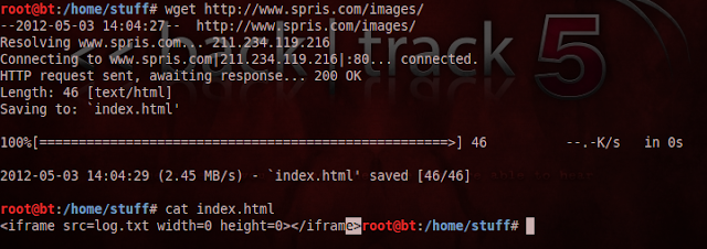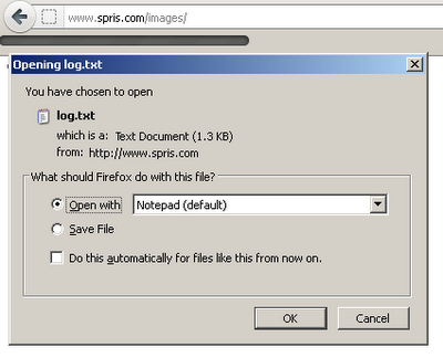 So it is pointing to an image folder on "http://www.spris.com/images/". On issuing a HTTP request to this URL, we are served withThe log.txt file is served only once to the IP. When we fetch the page, it contains an iframe that is pointed to log.txt file.