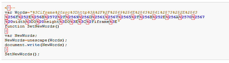 We came across a website and found that the .js files that are used for JSON communication have been injected with some malicious code. At the bottom of the sample js file, we find the following code snippet
