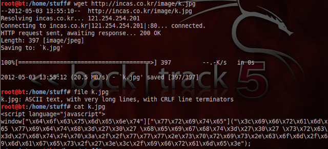 After doing this, we get the target URL as "http://incas.co.kr/image/k.jpg". The iframe is pointing to a image file. Interesting ! Let's see what we have