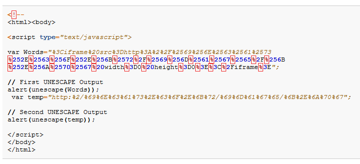 This JavaScript is not that heavy as it is using only unescape. However, the unescape has to be performed two times to get the URL. So we perform a simple step to tweak the code as follows